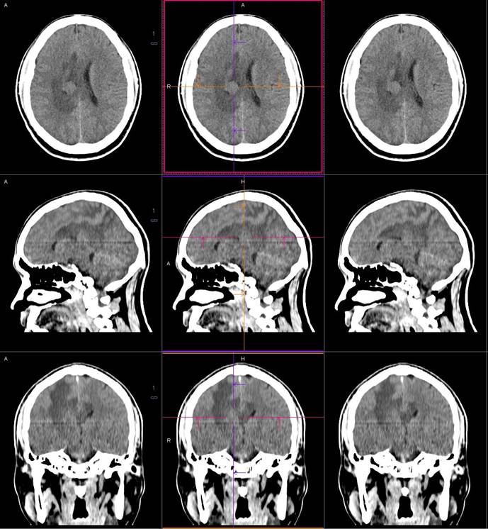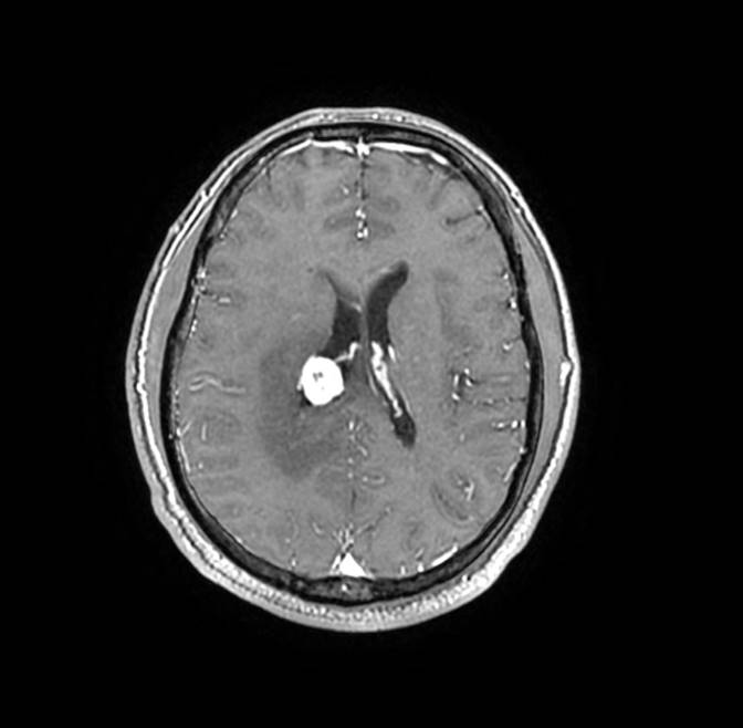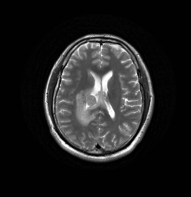 MR診斷:右側(cè)側(cè)腦室三角區(qū)及側(cè)腦室旁占位,考慮惡性腫瘤可能,間變型腦膜瘤?轉(zhuǎn)移瘤?