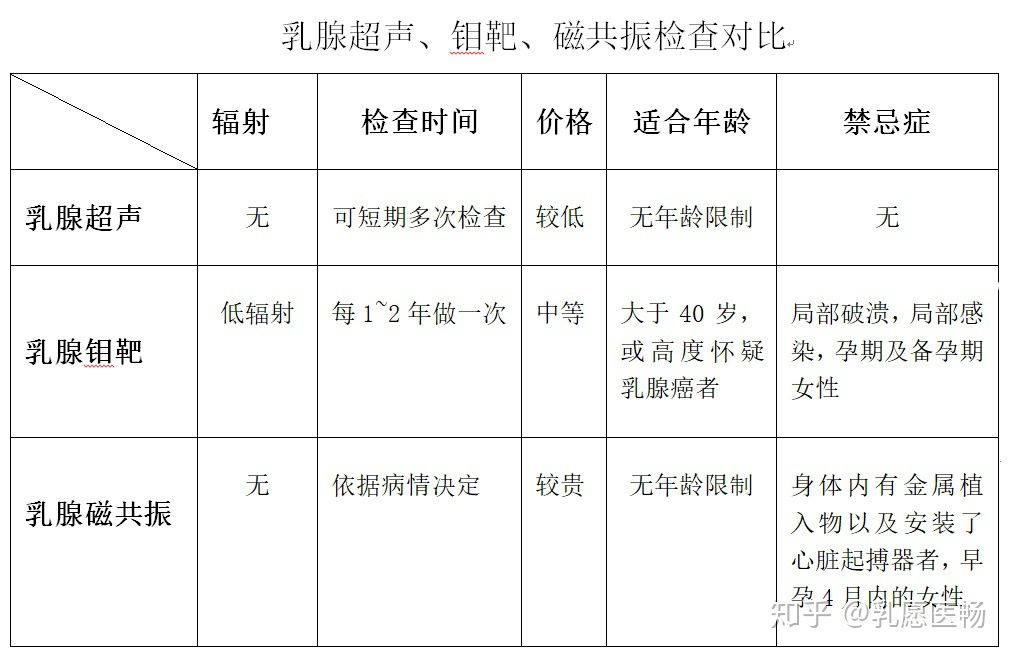 乳腺超聲、鉬靶、磁共振三大檢查比較