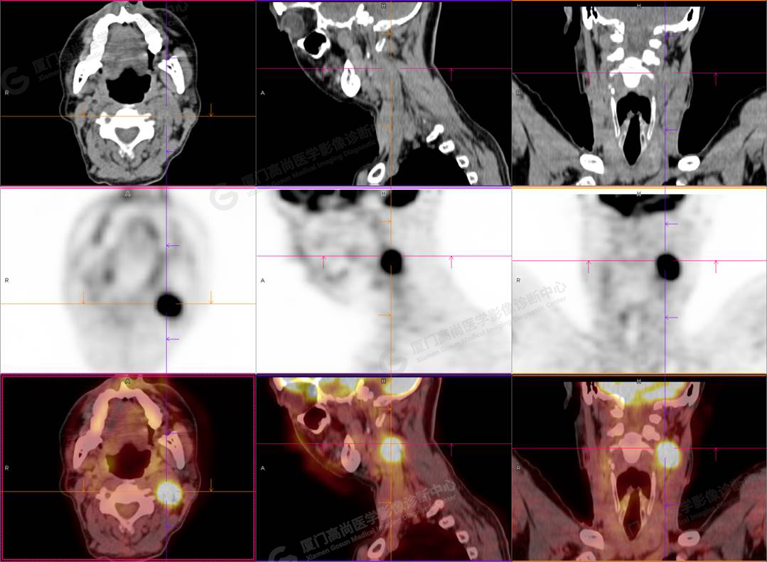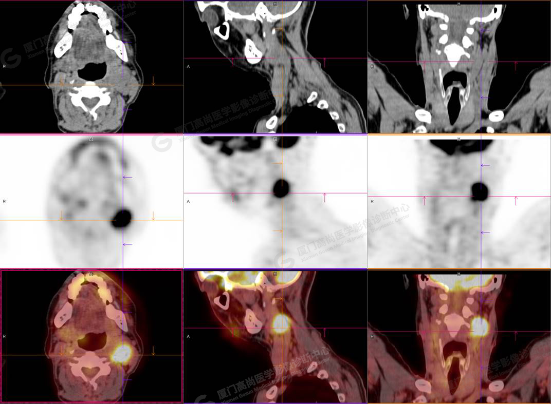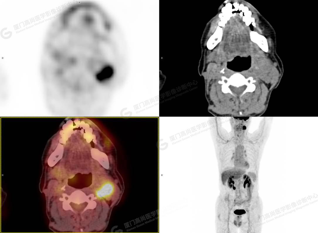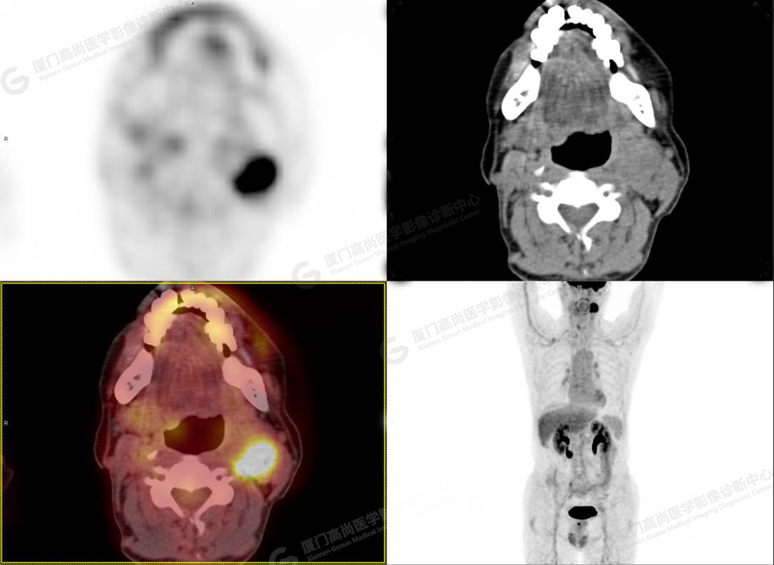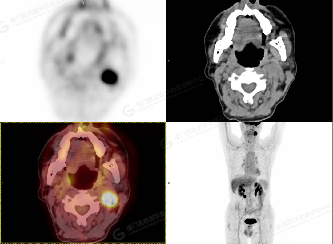 影像診斷: 左側頸部(II區(qū))腫大淋巴結,代謝異常增高,考慮腫瘤性病變可能性大(淋巴瘤?轉移瘤?),建議病理學檢查明確。
