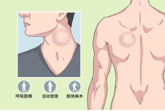 呼吸困難,如果腫瘤位于頸部則過大會導(dǎo)致壓迫氣管,使得患者呼吸困難。