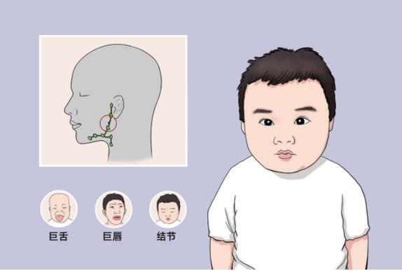 腫物狀似海綿,表現(xiàn)為受侵組織的肥大畸形,如巨舌、巨唇等。