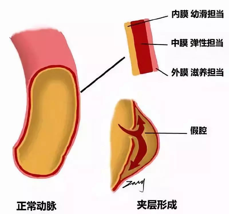 主動(dòng)脈夾層的發(fā)病誘發(fā)目前尚未明確,但據(jù)病例數(shù)據(jù)統(tǒng)計(jì),有80%以上患者合并患有高血壓癥,推測高血壓有可能促進(jìn)囊性中層壞死,但并不是誘發(fā)主動(dòng)脈夾層的原因,另有部分遺傳病患者也曾出現(xiàn)主動(dòng)脈夾層,部分女性患者更是在妊娠期間發(fā)病,猜測與妊娠期間內(nèi)分泌變化也可能存在關(guān)聯(lián)。