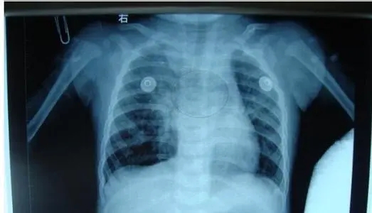 縱隔疝的診斷主要依賴胸部X線檢查,后前位胸片和縱隔肺門常規(guī)斷層片可見局部透亮區(qū)域超過氣管軸線,是肺組織疝入對側(cè)胸腔的征象,疝入對側(cè)的肺組織內(nèi)很少 見肺紋理,胸部CT可以清晰地顯示縱隔疝的部位和范圍,對于確診價(jià)值很大,此外,胸部X線檢查多有助于明確導(dǎo)致縱隔疝的原發(fā)疾病的診斷。