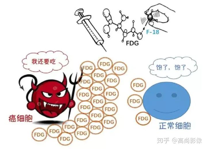 基本原理:以常見的腫瘤顯像為例,惡性腫瘤細(xì)胞對FDG(葡萄糖)攝取能力大超過了正常細(xì)胞,F(xiàn)DG標(biāo)記放射性核素后注入人體,會出現(xiàn)放射性核素在腫瘤等病變組織中的濃聚,從而在設(shè)備工作站的圖像上會顯示出一個放射性濃集的區(qū)域,結(jié)合SUV等定量信息,再結(jié)合CT傳統(tǒng)的解剖影像提高病灶定位的準(zhǔn)確性,幫助醫(yī)生進(jìn)行診斷和療效評估等。