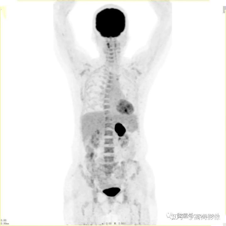 這種情況(轉(zhuǎn)移瘤尋找原發(fā)灶的患者)有很強的PET/CT檢查指征,在骨科醫(yī)生的建議下,方大爺很快預(yù)約了全身18F-FDG代謝顯像,第二天順利完成了檢查。
