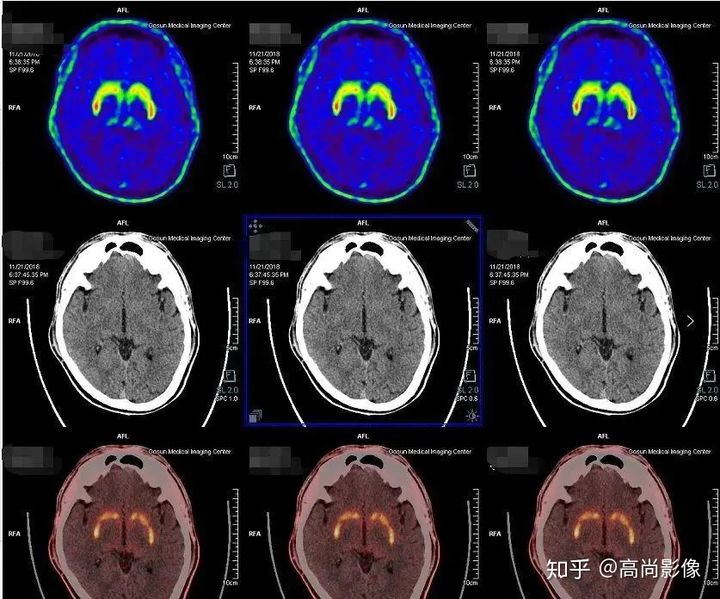 相比之下,童大媽就沒有這么幸運了。除了右邊身子總是抖動,童大媽還有嗅覺障礙、動作緩慢等癥狀。童大媽的PET/CT檢查結(jié)果符合帕金森的表現(xiàn),為臨床診斷提供了重要依據(jù)。