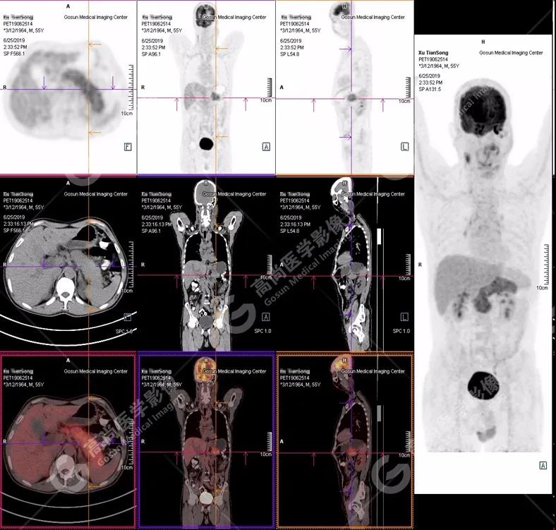 (3)全身其它部位未見(jiàn)明顯高代謝惡性腫瘤征象。
