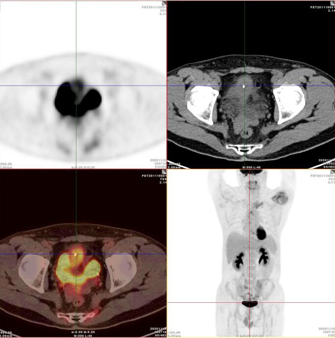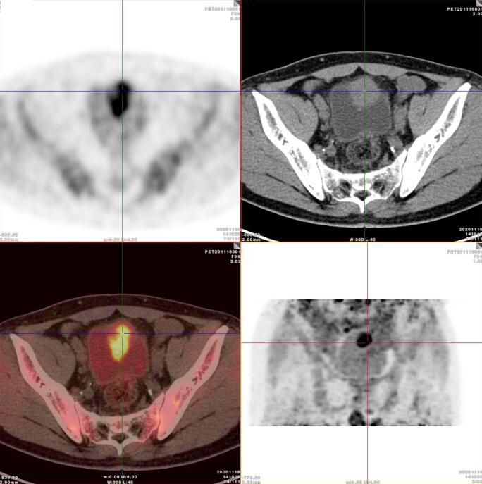臍尿管區(qū)及膀胱頂前壁軟組織腫塊,代謝增高,考慮臍尿管惡性腫瘤(臍尿管癌),建議穿刺活檢。