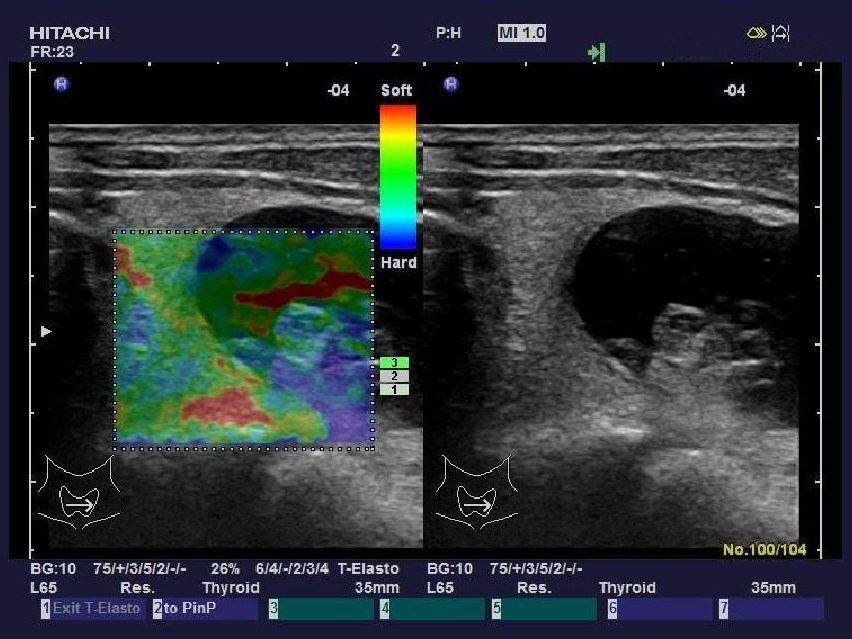 “ARIETTA 70”加載了彈性成像功能,實(shí)時(shí)組織彈性成像技術(shù)是根據(jù)人體不同組織受壓后的變形差別,將其不同的組織的彈 性系數(shù)差異用不同的彩色顯示出來的新成像診斷技術(shù)。