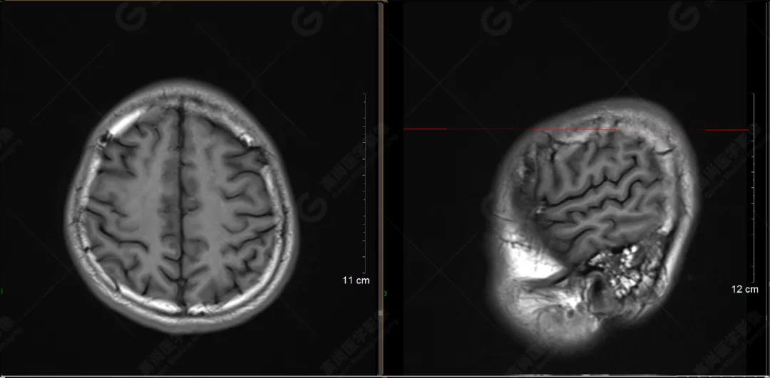 顱腦CT檢查未發(fā)現(xiàn)明顯血腫,但患者有間歇性頭痛,遂行磁共振檢查。