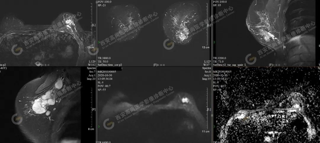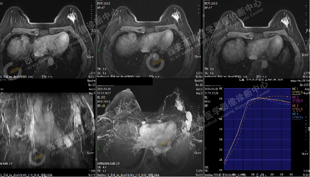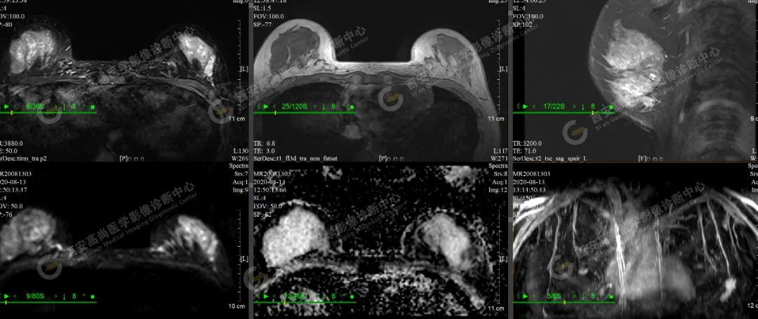 3、乳腺磁共振檢查:對(duì)B超及乳腺鉬靶不能明確病例或擬行保乳術(shù)的乳腺癌,攜帶乳腺癌相關(guān)基因的婦女篩查。適用于高危人群的篩查及乳腺癌的術(shù)前診斷和療效評(píng)估。