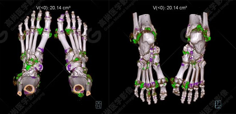 雙能CT痛風(fēng)染色圖像: