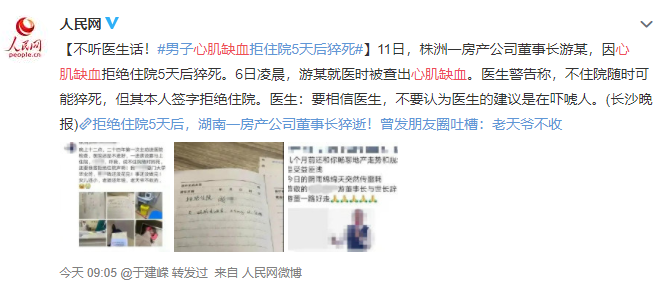 4月12日,#游偉#沖上微博熱搜。此前,根據(jù)網(wǎng)傳消息稱(chēng),株洲中偉房產(chǎn)公司董事長(zhǎng)游偉,因心肌缺血拒絕住院,5天后離世。