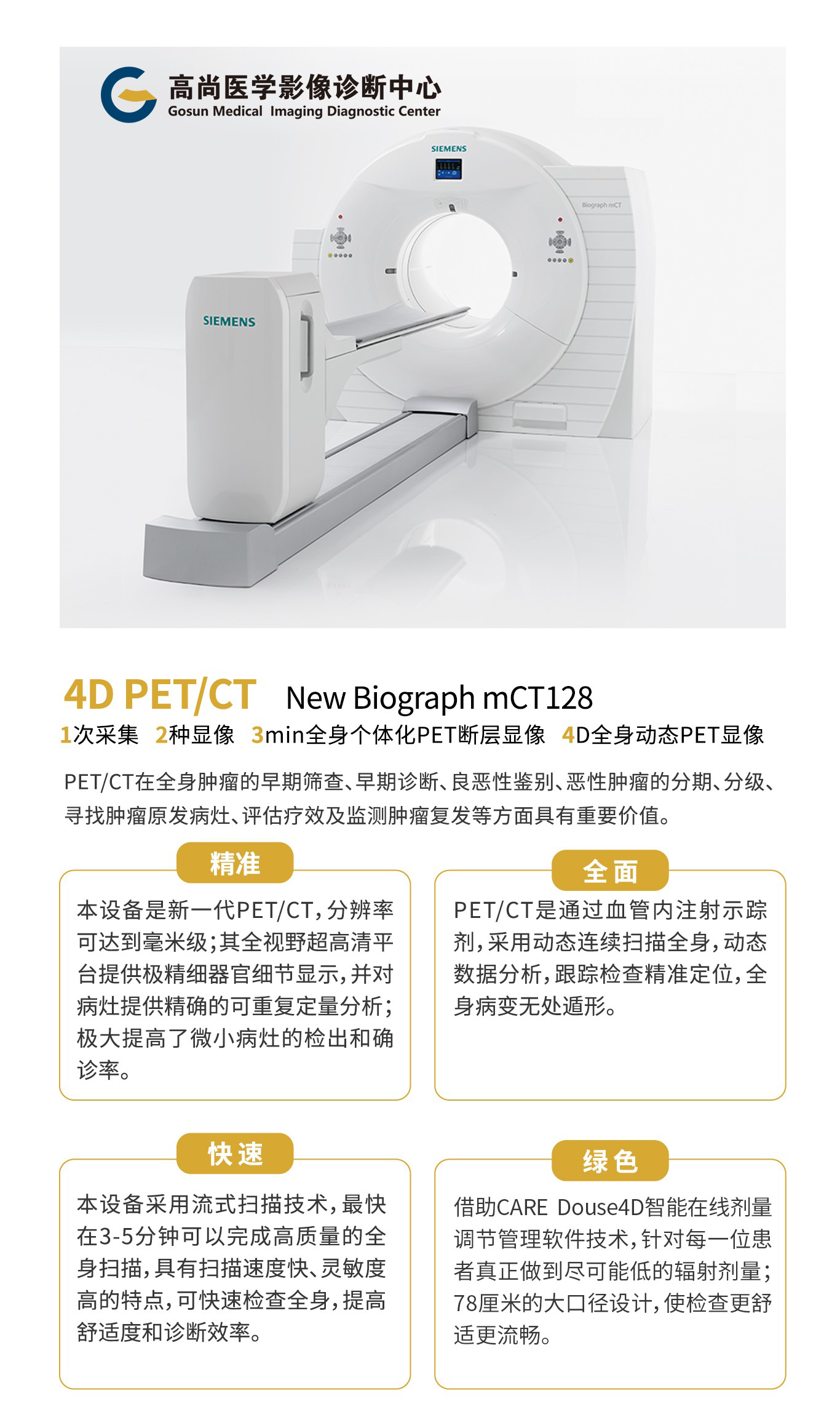 全身PET-CT掃描時間較短,約15分鐘完成檢查,可獲得全身(包括頭、頸、胸、腹部,盆腔)的PET-CT融合圖像的橫斷面、矢狀面、冠狀面圖像,功能和解剖信息俱備,定性、定量、定位分析“一站”完成。除了發(fā)現(xiàn)原發(fā)病灶外,還能判斷腫瘤有無轉(zhuǎn)移及轉(zhuǎn)移灶的準(zhǔn)確位置,從而直觀、全面發(fā)現(xiàn)原發(fā)病灶及全身受累情況。很明顯,這種"分期大考"的得分處在于:準(zhǔn)確,全面!